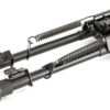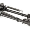 Designed for tactical shooting, these bipods are constructed of high tech durable aluminum with steel top platforms. The dual mounting design includes both a Picatinny and swivel stud mount to accommodate almost every type of rifle. The legs are fully adjustable for height, have non slip rubber feet, retract instantly with the quick retraction buttons, and lock out of the way with spring tension when not in use.