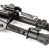 Heavy duty tactical bipod adjusts in height to meet the needs of elite tactical teams. Features aluminum construction, quick detach lever lock, three extension notches to adjust legs from 5.9″ to 7.3″ in height, retraction button allows legs to be folded out of your way, non-slip rubberized feet and it allows you to pan for your target. Mounts to your quad rail or using the included swivel stud and weighs only 12.8 ounces.