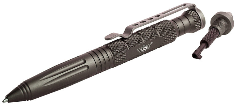 The UZI Defender Tactical Pen is made of heavy duty, lightweight aircraft aluminum and features an ultra-durable carbide tip glass breaker and built-in cuff key. Screw out the rear end glass breaker to reveal the secret hand cuff key, compatible with most professional handcuffs. Tried and tested, UZI Tactical Pens are both stylish and able to withstand a beating.