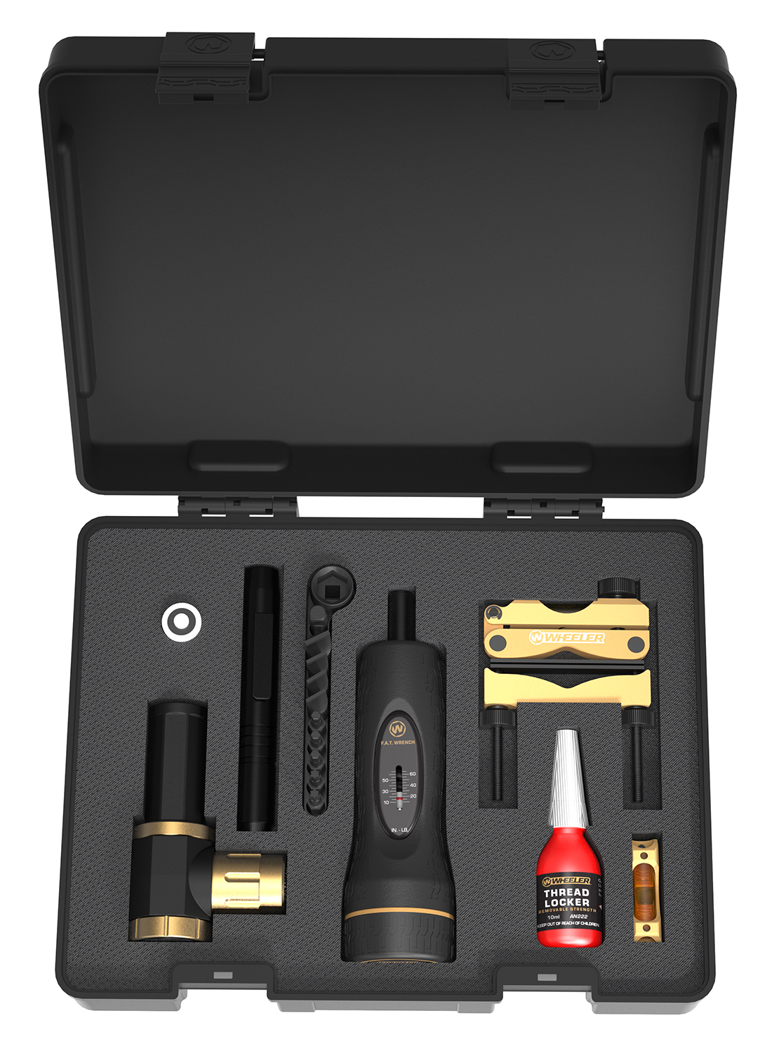 The ULTRA Scope Mounting Kit from Wheeler Engineering puts all the best Wheeler scope mounting accessories into one perfect package. With this kit you can level your rifle, level your scope, mount your scope to the rifle and then coarse sight in your scope with precision and accuracy. The ULTRA scope mounting kit even provides thread locker and a lens pen to keep your scope clean and your optics secure on even the largest caliber guns. Includes a lens pen to keep you scope clean and a heavy duty carry case with foam molded compartments for storage.