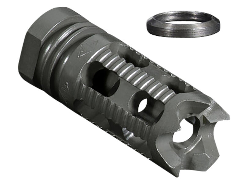 The popular Phantom Flash Suppressor has been redesigned to work as a muzzle brake and compensator. This 5 port design has no downward facing port which helps eliminate dust signature when shooting in the prone position. The 5M1 keeps the aggressive front end for use in hand to hand situations. These products do not reduce the flash signature of the firearm.installation is available for all YHM products onto your rifle. Some restrictions apply, call for details. Threaded 1/2″-28. Includes crush washer. Length: 2.25″. Weight: 3 Ounces.
